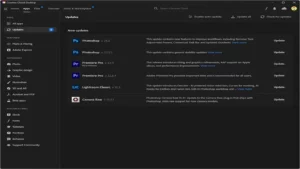 - تحديثات البرامج : كما ذكرنا في المقدمة الموجودة في الأعلى أن ادوبي كريتيف كلاود إداري أكثر من إعتباره أداة للعمل عليها, ولأن البرامج الموجودة داخله تتميز بكثرة التحديثات فمن ذلك البرنامج تستطيع القيام بالتحديثات الخاصة بها بشكل سريع بمجرد توفيرها, ومن الداخل تستطيع التحكم في الإختصارات المعروضة على سطح مكتبك للبرامج الخاصة بك والتابعة للشركة.