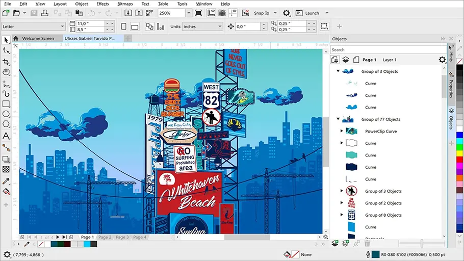 - بعد الانتهاء من هذه الإجراءات سوف يفتح لك “كوريل درو 2025 بالتفعيل CorelDRAW” وستبدأ في العمل على مشروعك بالاستعانة بالأدوات الموجودة على جانبي الشاشة.