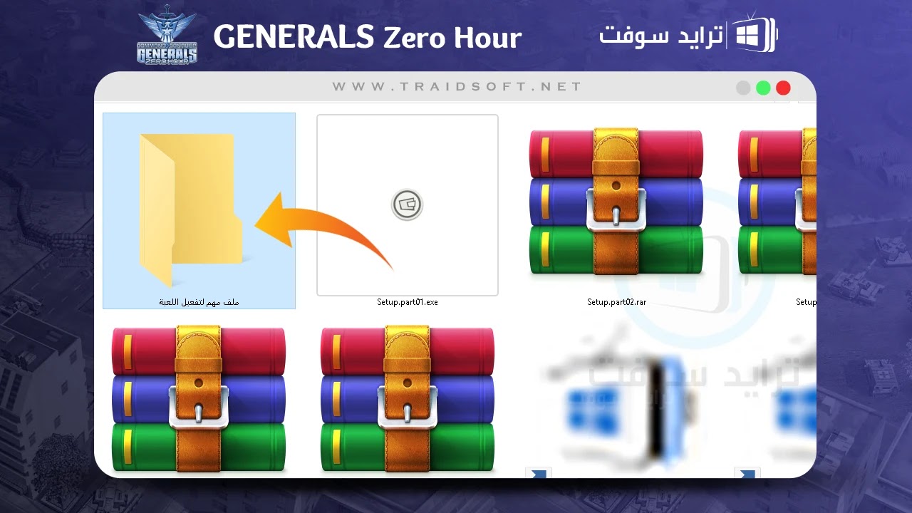 - قم الآن بالتوجه إلى المجلد الرئيسي الخاص بلعبة Generals Zero Hour كاملة والذي قمنا بتوضيحه سابقا وسوف تجد بداخله مجلد في وسط الملفات, المجلد باسم ( ملف مهم جدا لتفعيل اللعبة ), هذا هو مجلد التفعيل قم بفتحه بالضغط عليه مرتين.