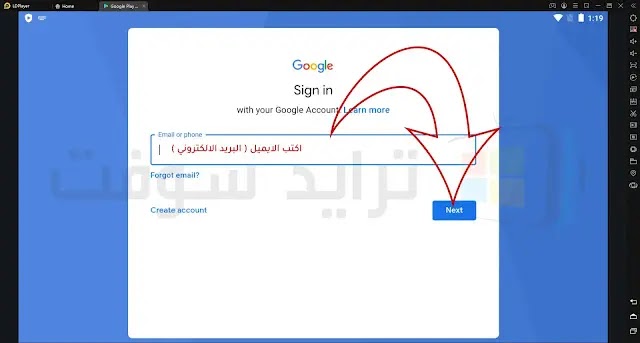 - بعد ذلك نقوم بإدخال الايميل أو البريد الإلكتروني والضغط علي Next.