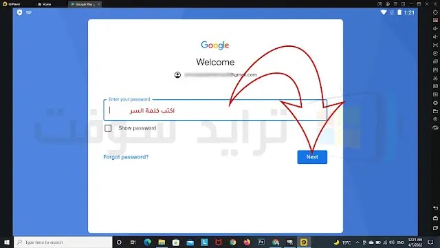 - بعد ذلك نقوم بكتابة كلمة السر والضغط على Next.