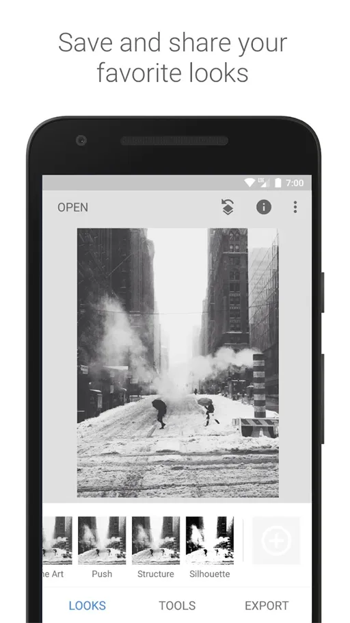 تحميل snapseed مجانا من تطوير شركة جوجل العالمية لذلك يتمتع التطبيق بإمكانيات برمجية كبيرة جداً, كما يأتي لنا التطبيق بواجهة بسيطة وسهلة في الاستخدام. التطبيق مجاني تماماً وغير ربحي, لذلك لن تجد أي فلترات او ادوات مُغلقه داخل النُسخه المجانية وأيضاً لن تواجهك أي اعلانات مُزعجه داخل التطبيق. يحتوي تنزيل برنامج snapseed مهكر على 29 أداة تعديل للصور جميعها مُميز جداً ويُمكنك من التعديل علي الصور واخراجها بشكل احترافي مثل مُحترفي التعديل على الصور الشخصية.