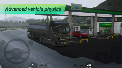 - عناصر التحكم : هذه اللعبة يمكنك من خلالها تعلم قيادة الشاحنات بسهولة وذلك بسبب عناصر التحكم التي توجد باللعبة والخاصة بالهواتف, وذلك لأن اللعبة تحتوي على العديد من العناصر التي يمكنك بواسطتها التحكم في القيادة, حيث تجد عنصر خاص بالتحكم في الإتجاهات بجانب زر السرعة وأخر للفرامل, كما تلاحظ أيضا وجود عناصر تحكم أخرى فرعية مثل الأشارات والإضاءة.