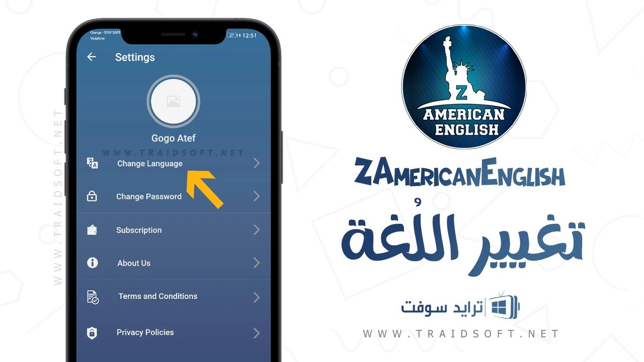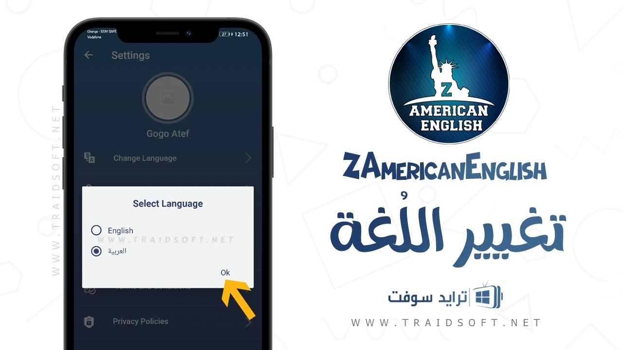 - تغيير لغة تطبيق تعليم اللغة الانجليزية ZAmericanEnglish مهكر