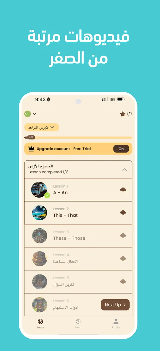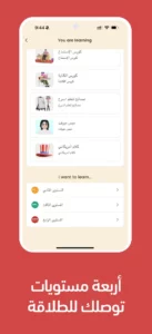 - بتوالي تنفيذ نفس الخطوات وهي استماع الدرس واستيعابه بشكل صحيح ثم أداء الاختبار والحصول على نتيجة النجاح ستجد الدروس يتم فتحها بشكل مستمر كما يظهر أمامك بالصورة المرفقة.