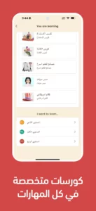 - تعلم كيف تستخدم التطبيق : يقوم الزر هذا بعرض أمامك فيديو مدته لا تتخطي الـ 20 دقيقة للمدرس الخاص بالكورس يقوم فيه بتوضيح طريقة استخدام التطبيق الصحيحة وتوضيح جميع الامور ليسهل على المستخدم التعلم.