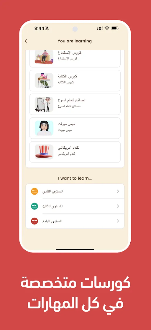 كم مستوى في تطبيق ذا امريكان انجلش مهكر؟