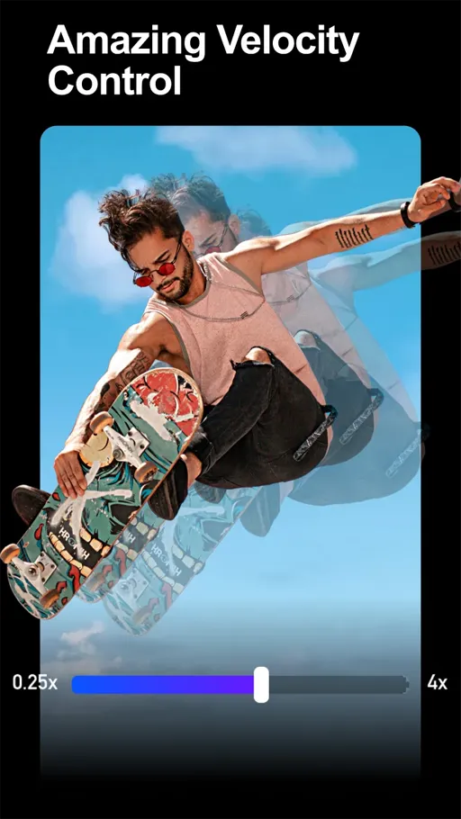 - السرعة : أما بالنسبة للسرعة فيُمكن التحكم بها أيضاً حيث يتم تسريع وتبطيئ الفيديو على حسب ما يتناسب مع ذوق المستخدم وبما يتوافق مع الأسلوب الخاص بالفيديو.