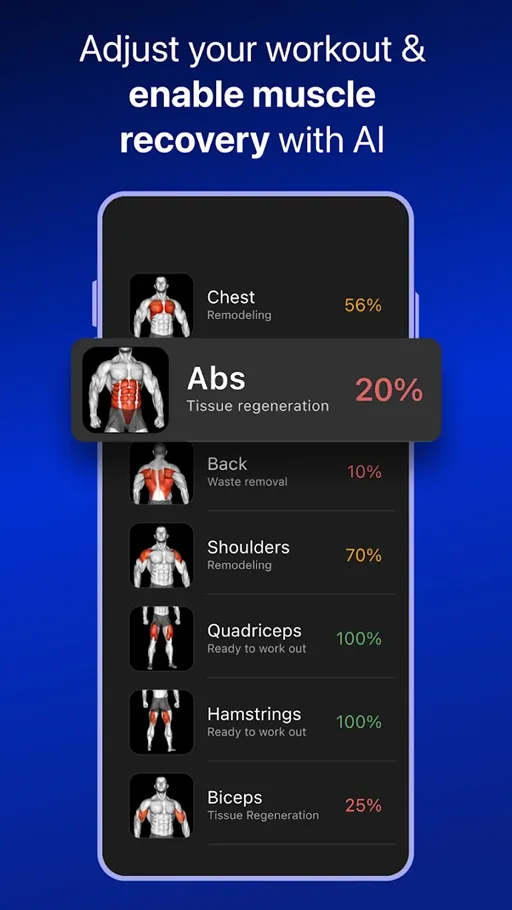 على سبيل المثال ستجد في الخطة التدريبية يوم مٌخصص للصدر والذراعين ويوم آخر للساقين ويوم للظهر ويوم للجسم بالكامل وأيام أخرى بدون تمارين وذلك يٌتيح تعافي العضلات بشكل كافي قبل إعادة إستهدافها مرة أخرى في تمارين أكثر صعوبة, على أساس هذه المعلومات نجد أن التطبيق يُراعي أهمية الراحة مع توفير إستشفاء دائم ضمن الجدول التدريبي.