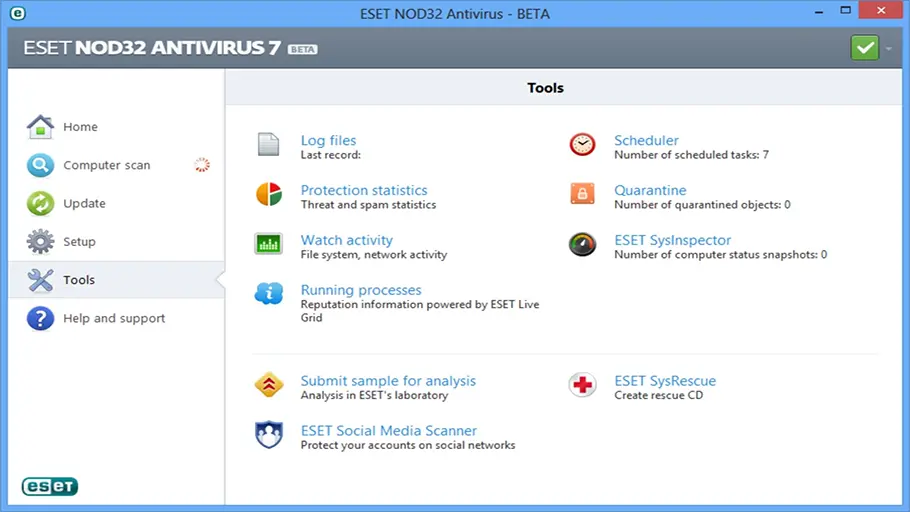 وبفضل واجهة البرنامج البسيطة التي تسهل عليك الوصول إلى الإعدادات والتحكم الكامل في ESET Internet Security من ميديا فاير الذي يوفر عليك إستهلاك طاقة بطارية الكمبيوتر ويقوم بحجب جميع المواقع الضارة التي تحتوي على برمجيات خبيثة, برنامج ESET NOD32 Antivirus من البرامج المجانية المتوفرة لفترة تجريبية لمدة 30 يوماً.