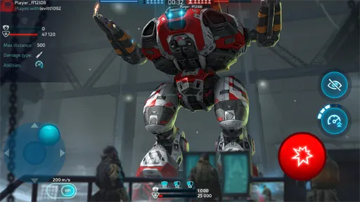 - إطلاق النار : بعد تحميل لعبة Robot Warfare PvP Mech Battle مهكرة يتوفر أيضا زر خاص بإطلاق النار الذي تنثر عليه لكي يتم إطلاق النار نحو الهدف المحدد, يمكنك النقر مطولا فوق هذا الزر حتى أن يتم نفاذ الذخيرة يمكن تحديد الهدف خلال الإطلاق بدون قيود.
