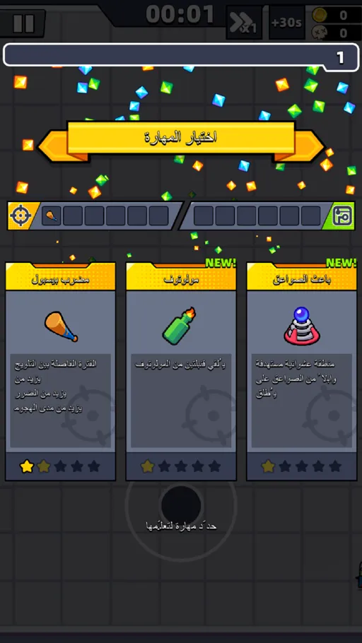عِند التعرض للموت تقوم بـ بدء لعبة جديدة بداية من المرحلة الأولى, من المزايا التي تساعدك على التقدم في مدة الصمود داخل لعبة Survivor IO Survival Game مهكرة هي عناصر الإمدادات, في نهاية كل مرحلة تظهر قائمة تحتوي على خيارات خاصة بعناصر متنوعة يمكنك تحديد الخيار الخاص بالعنصر المراد لكي تستمتع به خلال اللعب.