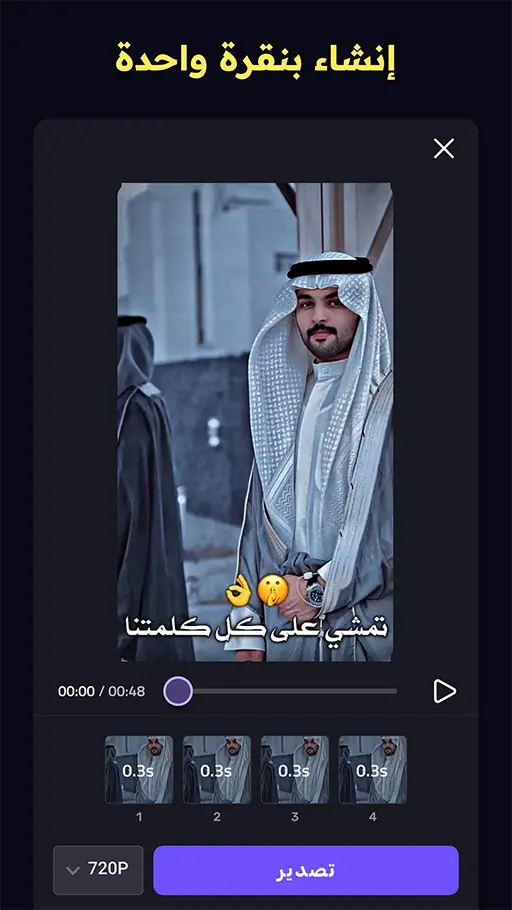 بعد الانتهاء من التعديل وضبط جميع العناصر اضغط على زر التصدير في برنامج تصميم فيديوهات فيفا كت واختر جودة الحفظ المناسبة من بين الخيارات المتاحة كـ 1080p أو 720p أو 480p، ثم انتظر حتى يكتمل التصدير وسيتم حفظ الفيديو تلقائياً على هاتفك بصيغة MP4 جاهزاً للمشاركة الفورية على منصات التواصل الاجتماعي.